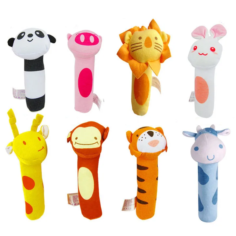 Baby Plush Rattle 15.5cm infant Mobile Bibi bar Toy stick Soft Cat tiger Doll Baby Crib Animal Squeaker Toy Hand Puppet